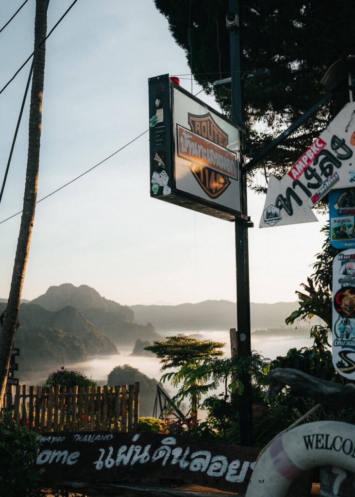 Getting there is part of the adventure. You can rent a scooter or car, and enjoy a scenic drive through rice paddies, farmland, and rolling hills. Make time to stop at local coffee spots like Magic Mountain Cafe, Route 1148 Cafe, and Cafe’ine, they not only serve good coffee but offer incredible views and a chance to meet friendly locals (mostly Thai motorbike travelers).