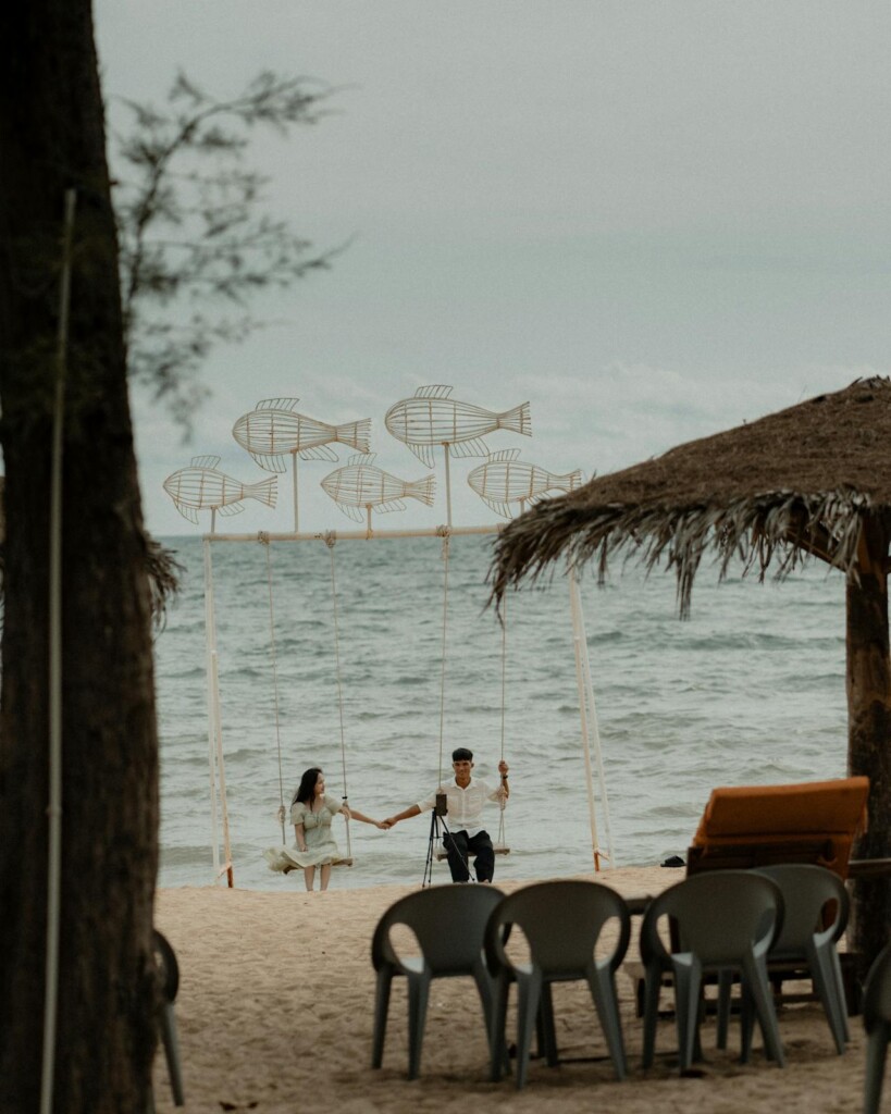 The shoreline here is quiet but not empty. Families can enjoy swimming in calm, clear waters, while couples or solo travelers often spend their afternoons lounging under the shade of trees, watching the sun slowly sink into the horizon, one of Ong Lang’s signature moments.