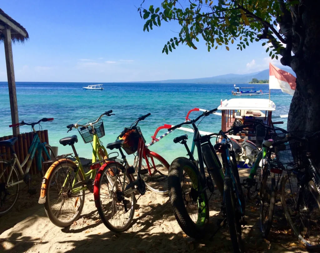 After spending the morning underwater, enjoy a relaxing lunch at a beachside restaurant. Later, rent a bike from your accommodation and take a leisurely ride around the island. The ride can be completed in less than an hour, and along the way, you can stop by the iconic Gili T swings for that perfect photo. Don’t forget to refresh yourself with a freshly cracked coconut at one of the many beach stalls.