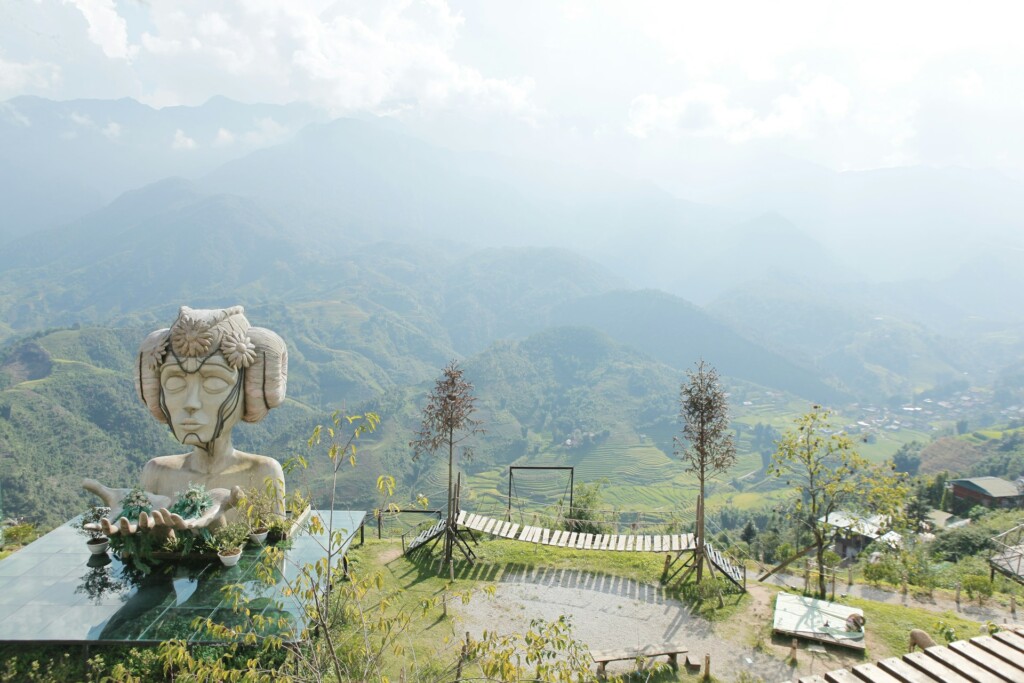 If you’re in the mood for something a little more playful and photogenic, Moana Sapa is a fun stop just a short ride from the town center. This mini outdoor complex was made for photos, with iconic backdrops like a “Bali gate,” angel wings, and a giant hand sculpture overlooking the mountains. It’s touristy, sure, but still a nice spot to take in the scenery, especially if you’re traveling with kids or just want some lighthearted moments in between the more rugged adventures.